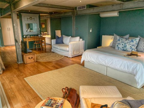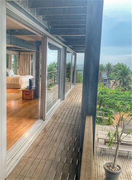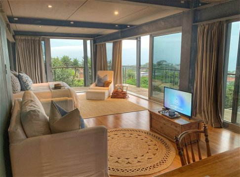 Bedroom suite with breathtakingly beautiful sea views up the entire coastline, lounge study area, dressing area, en-suite. Outside shower and open plan toilet. Wrap around balcony. Large glass panels dominating 75% of the room with incredible ocean and inland views.