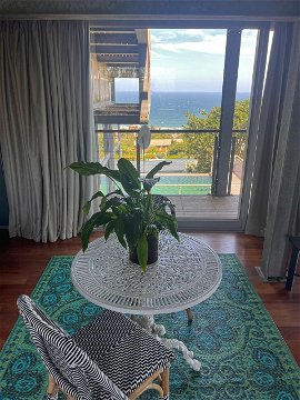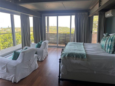 Bedroom suite with breathtakingly beautiful sea down the entire coastline, lounge study area, dressing area, en-suite, outside shower, wrap around balcony. Walk-in dressing room. Glass panels dominating 60% of the room with ocean and inland views.
